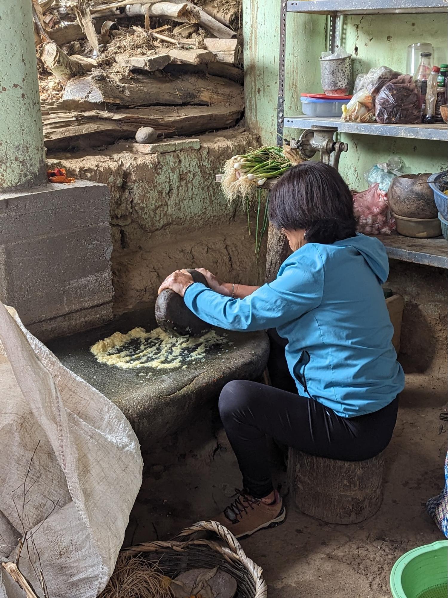 The last day of our visit there we went to visit Irma's friend's father's house in the country. It was a couple of hours ride over narrow, winding mountain dirt roads, some partially washed out. The farm was a steep hillside. The stove was a grill over a wood fire. We had fresh chicken and potato soup. It was delicious. We toured the farm. It has many different kinds of fruits, coffee, pomegranates, vegetables, and medicinal plants. We sampled delicious, fresh mandarin oranges right off the tree!