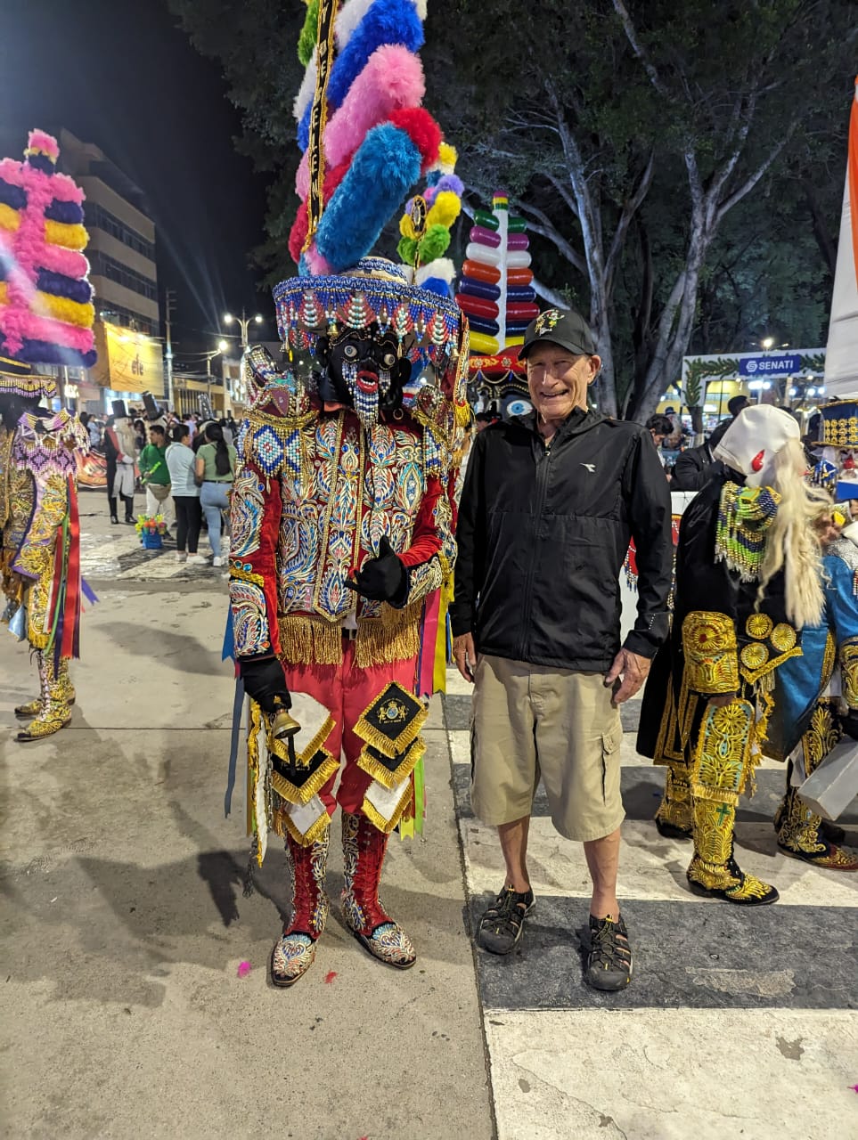 Each group has a band, the baby Jesus, the slave owners (a well dressed man and woman), the slaves and ‘clowns’. Not sure what the clowns represent. My first encounter was from the rooftop of the building we were staying in to see a group marching through the street. All the groups marched to the town square where they performed their dances. All the dances and music were the same. The day we arrived, we followed one group to the town square and watched a bunch of shows.